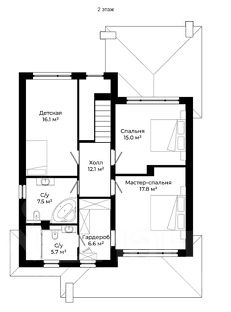 Второй этаж: 3 комнаты: мастер-спальня с гардеробом и санузлом, детская, спальня, и с/у.