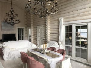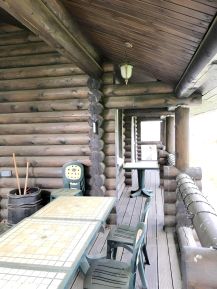 Жилой дом из оцилиндрованного бревна (диаметр 220 мм): - размеры по краям 12,4 на 14,7 метров (рубка в чашу). Фундамент - свайный. Полы -с утеплением. Веранда и выход на террасу. Отопление - электрический котёл (решается вопрос по газификации деревни). Водонагреватель. Своя скважина (131 метр). Напротив дома - деревенский колодец. В доме стоит фильтр на воду. Переливной септик (3 шт.)
