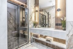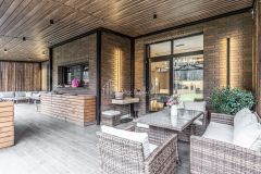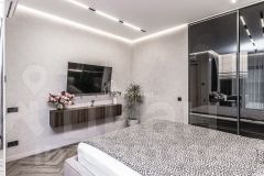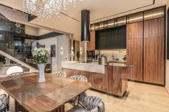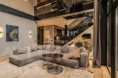 Интерьер выполнен по эксклюзивному дизайн-проекту: три спальни, включая мастер-сьют с приватным санузлом, просторной гардеробной и впечатляющей террасой, открывающей панорамные виды. Кухня-столовая и гостиная объединены в единое пространство, идеально подходящее для комфортного отдыха и приема гостей. В доме предусмотрены три санузла с премиальной сантехникой и гардеробная, а мебель изготовлена на заказ, что подчеркивает индивидуальность и высокий уровень исполнения.