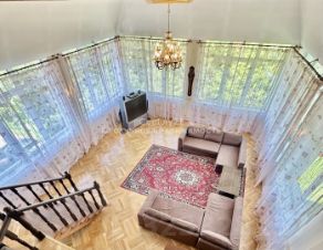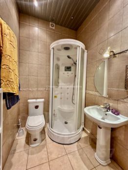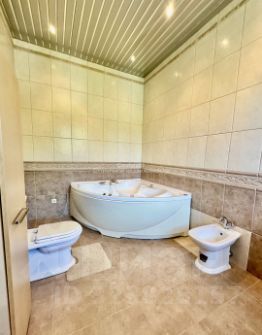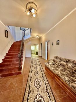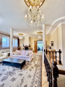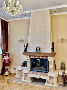 Дом кирпично - блочный, подвал из монолита. Год постройки - 2003 год. 5 спален, 2 гостевые комнаты (одна с камином), кабинет, сауна, бассейн. 5 санузлов, кухня, столовая, цокольный этаж. Инженерное обеспечение: 2 газовых котла, бойлер, естественная вентиляция. Гараж с выходом в дом на 2 ММ плюс гостевая парковка на 2 машины. Участок засажен плодовыми и хвойными деревьями, газон, дорожки из дикого камня, беседка, зона барбекю.