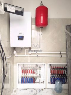 * радиаторы отопления по стенам и перед окнами в полу, всё подключено, всё работает,