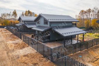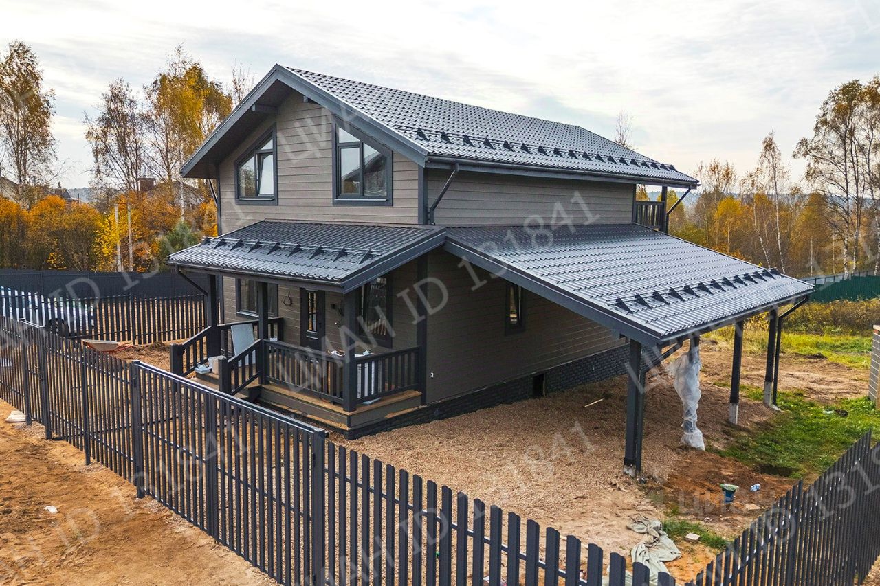 Дом утеплен для круглогодичного проживания, заложена дополнительная шумоизоляция. Кровля металлочерепица (установлена водосточная система, снегоудержание). Окна двойные ПВХ стеклопакеты с ламинацией. Входная дверь металлическая утепленная, с терморазрывом.