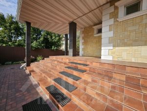 Дом из кирпича, утеплён, обложен снаружи дагестанским камнем премум-класса и покрыт гидрофобизатор, мягкая кровля, железобетонные перекрытия. Дому не страшны никакие осадки, он легко выдержит любые перепады температуры, зимой в нём тепло, а в жару прохладно.