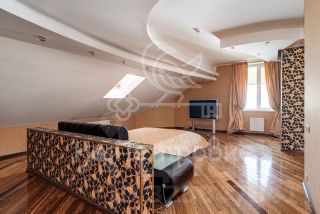 -Необычная и уютная зона - холл с оборудованием для домашнего кинотеатра на мансардном этаже.