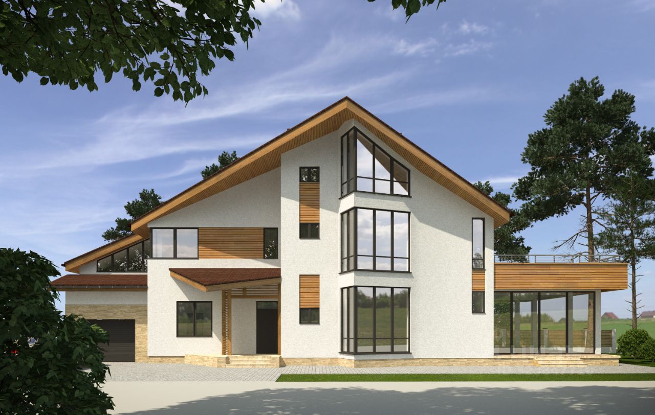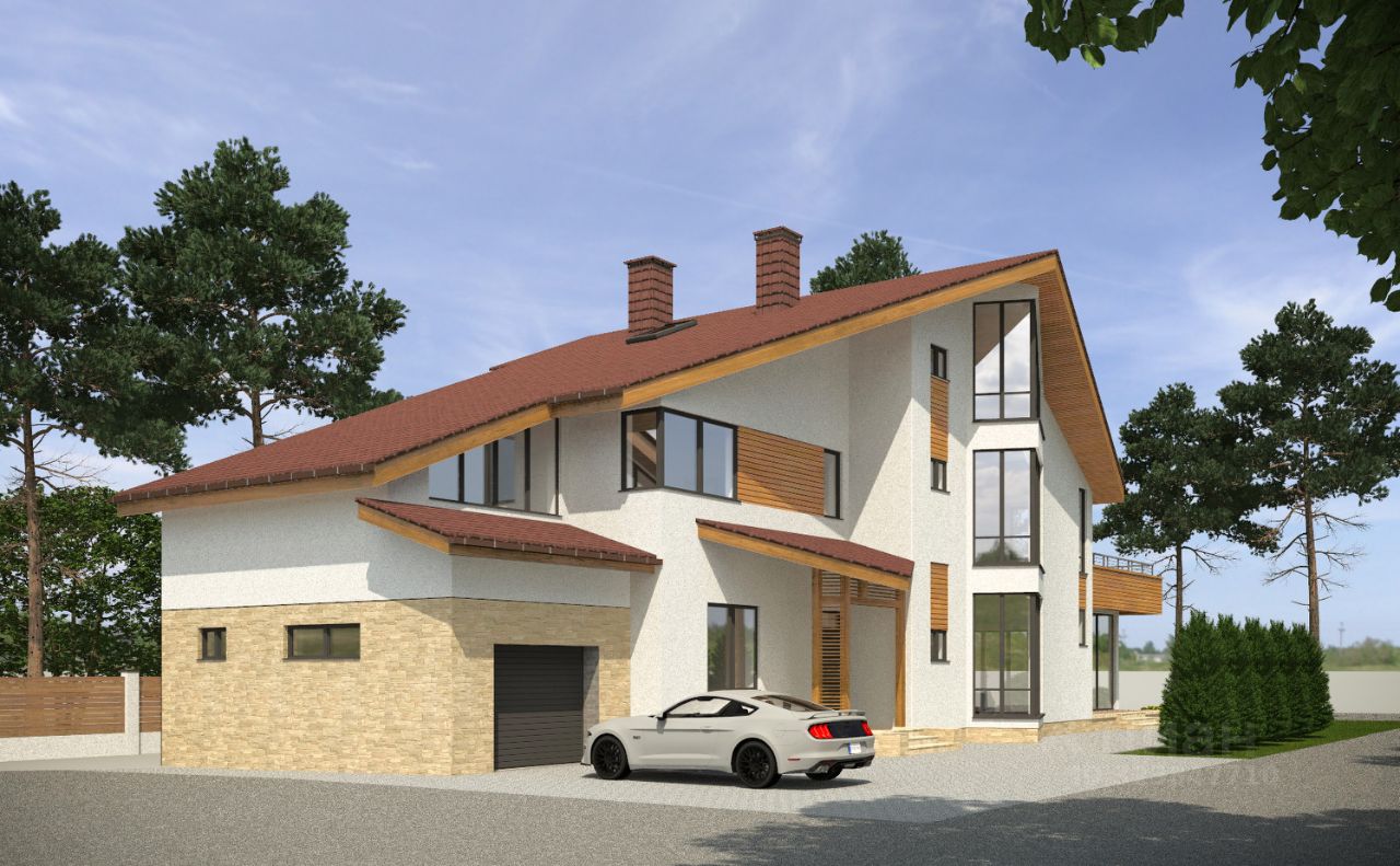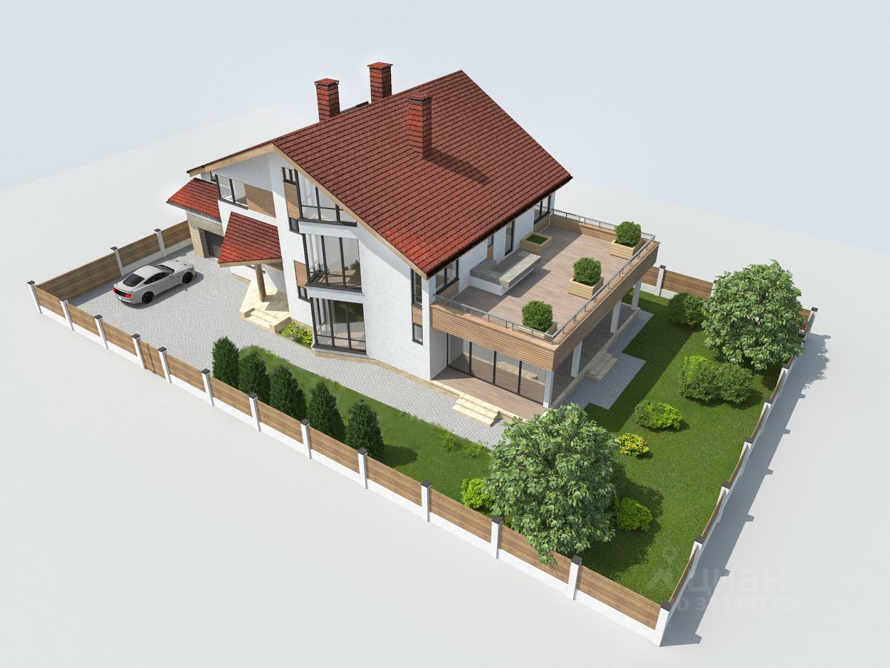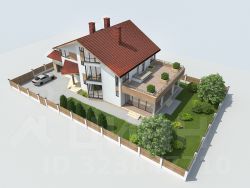 Участок, граничит с соседями с одной стороны. Вокруг дома зеленая полоса газона или возможна высадка деревьев. Дом имеет три полноценных этажа, личную рабочую газовую котельную, гараж,теплые полы и встроенную сауну, два балкона, мансардные окна.