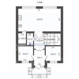 - Первый этаж: просторная кухня гостиная 28,2 м2, гардеробная, бойлерная.
