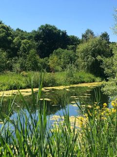 Напротив расположен красивый пруд,