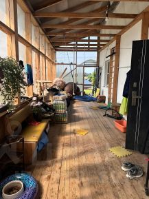 Вместо гаража сделан спортивный зал с теплыми полами.