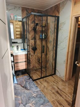 В ванной комнате: кафель, новая современная сантехника и душевая кабина.