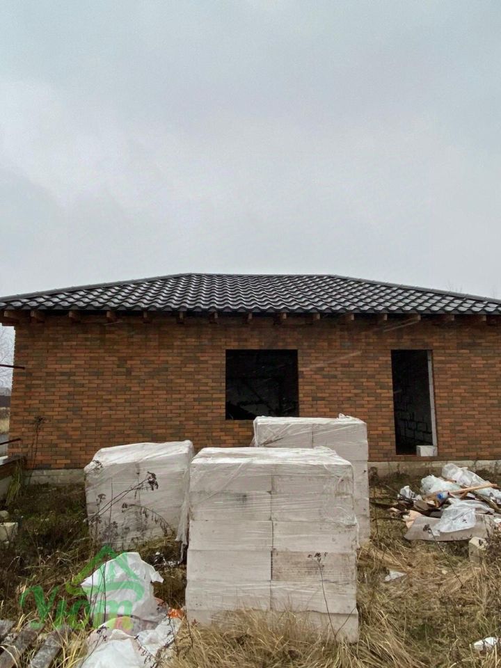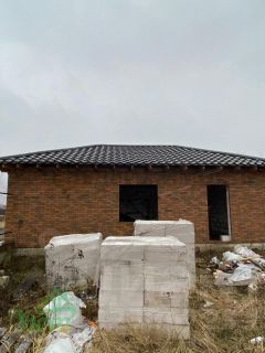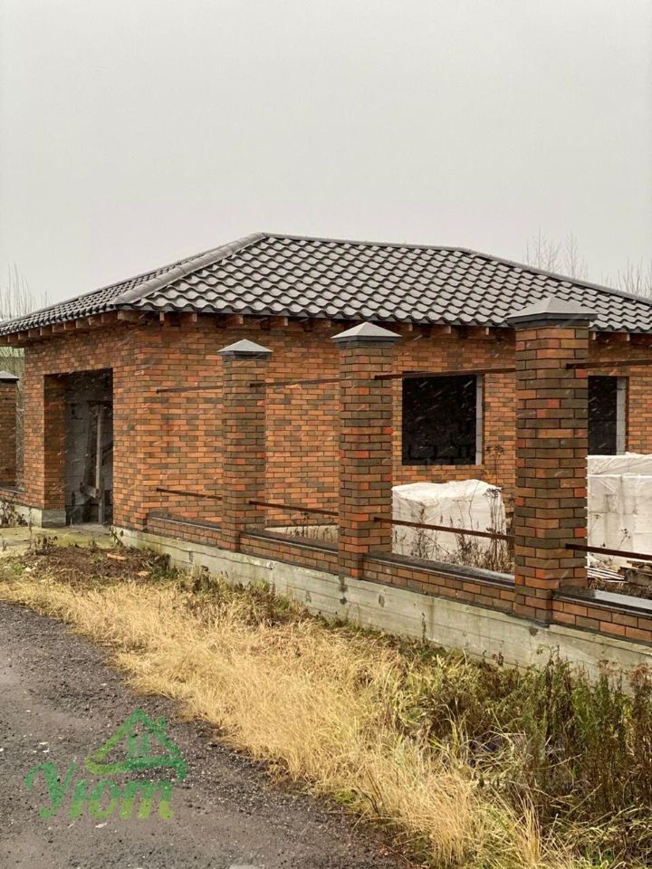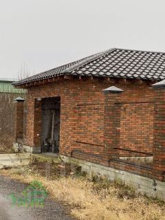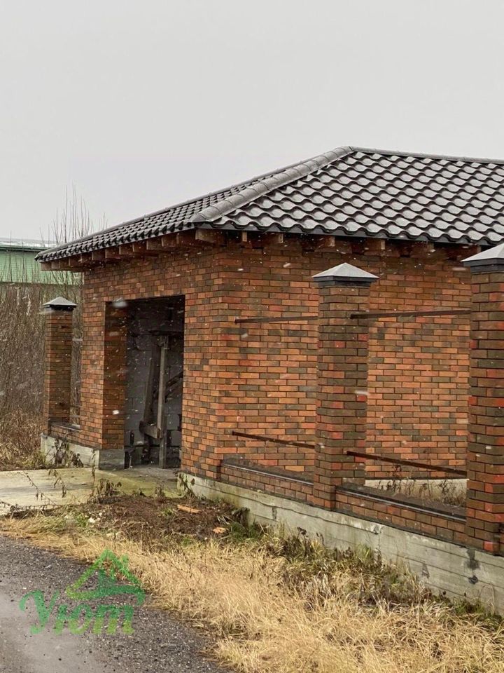 Гараж из блока с облицовкой кирпичом, под крышей. Готовность ~90%: осталось установить ворота и окна.