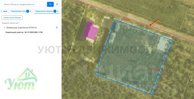 Площадь: 1691 м² (17 соток), размеры ~42x40 м. Участок ровный, прямоугольной формы.