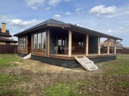 • Новый одноэтажный каркасный дом площадью 107 кв. м, расположенный в коттеджном посёлке "Лисицыны Лужки".