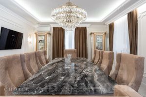 Дом площадью 850 кв.м. расположен на участке 17.25 соток в коттеджном поселке "Крона". В доме предусмотрены: 5 спален, 7 с/у, гардеробные комнаты, кухня, гостиная, столовая, 2 террасы, хаммам, тренажерный зал и гараж на 2 автомобиля. Рядом с поселком есть вся необходимая инфраструктура: школа, детский сад, университет, кафе и ресторан.