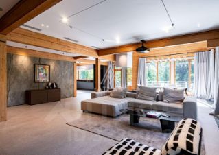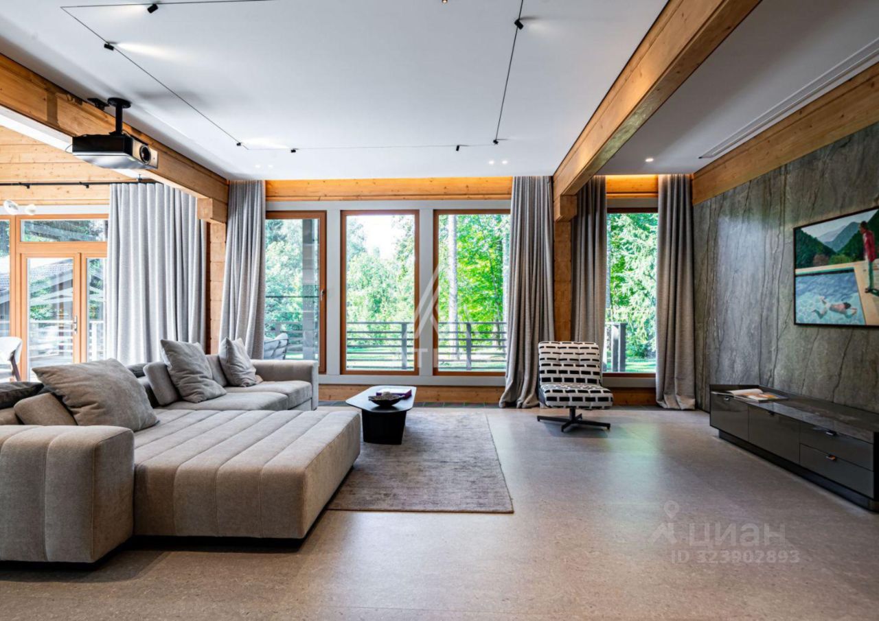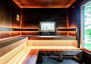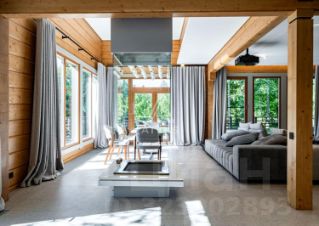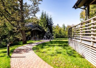 Дом площадью 380 м2 с панорамными окнами и дизайнерской отделкой оборудован всем необходимым: стильная немецкая кухня с техникой Smeg, система "умный дом", приточно-вытяжная вентиляция и кондиционирование, система увлажнения воздуха во всех помещениях, отдельно стоящий теплый современный функциональный гараж на 2 машины и комнатой с су для персонала, просторная терраса с естественной тенью от могучих сосен, великолепный дровяной камин.