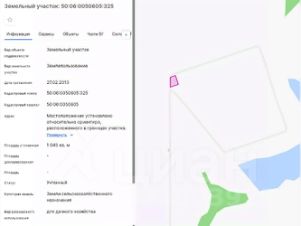 Земельный участок: кадастровый номер 50: 06: 0050605: 325. Почтовый адрес: Московская область, Шаховской район, с/пос. Степаньковское, юго-западная часть кадастрового квартала 50: 06: 0050605. Площадь: 1045 +/- 16. Категория земель: Земли населенных пунктов. Виды разрешенного использования: для дачного хозяйства. Координаты: 55.95509483, 35.48218346