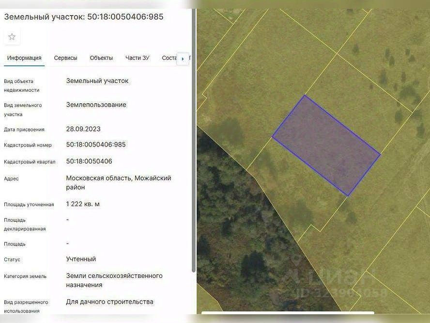 В рамках процедуры банкротства должника с торгов реализуется земельный участок площадью 1222 кв. м по адресу: Московская область, Можайский р-н. кадастровый номер участка 50: 18: 0050406: 985 категория земель: земли сельскохозяйственного назначения вид разрешенного использования: для дачного строительства координаты: 55.66740112, 35.57860795