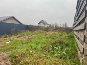 Участок прямоугольный, имеет круглогодичный проезд, расположен между участками жилыми домами, огорожен сеткой рабицей. Коммуникации проходят по границе участка со стороны подъездной дороги (газ, электричество, водопровод). Есть небольшой хозблок.