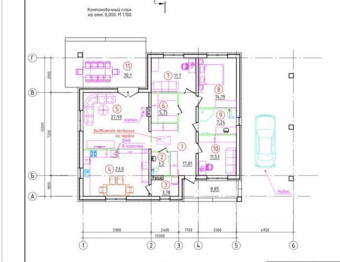 Площадь застройки 150 кв. м + терраса 30 кв. м.