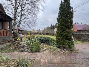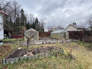 14 соток; Лес по границе участка; Земли населенных пунктов (для садоводства); Огорожен забором, есть калитка с выходом в лес; Уличное освещение; Оборудовано парковочное место для автомобиля; Парковка и тропинка выложены брусчаткой; Уличный фонтан с мостиком и подсветкой; на участке мангальная зона, беседка, теплый гараж, огород с плодоносящими деревьями и кустарниками, грядки, две теплицы.