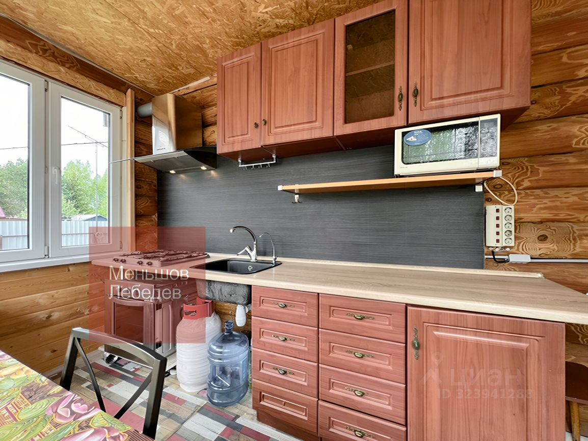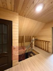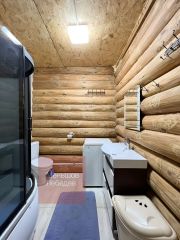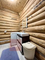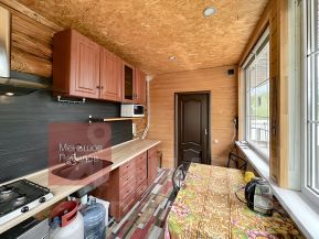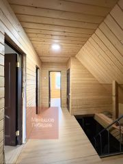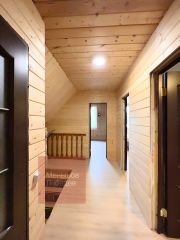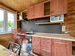 Стены дома: Оцилиндрованное бревно диаметром 25 см. Перекрытие межэтажное: балки толстые, внутренние стены брус 150, все утеплено, сделано под натяжные потолки. Кухня утеплена (роквул, толщина 250мм).