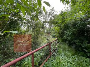 На участке есть большой пруд, диаметров около 15 метров, с бетонной отмосткой и мостиком, плодовые деревья, огород.