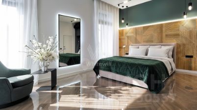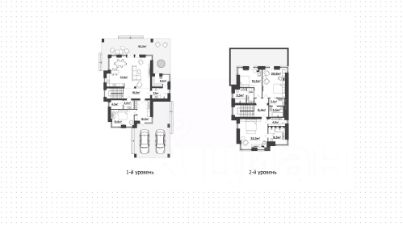 • Второй уровень: холл, мастер-спальня с гардеробной и санузлом, две спальни с гардеробными, санузлами и общим балконом.