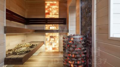 • Первый уровень: прихожая, кухня-гостиная-столовая, спальня, санузел, спа-зона с сауной, душевой и санузлом, котельная-постирочная, терраса с купелью.