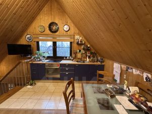 ДОМ: Построен в 1997 году на ленточном фундаменте из бруса 15*15, с утеплением стен, крыши (Rockwool 200 мм с мембраной) и пола (150 мм). Внешняя отделка блокхаус, внутренняя евровагонка. В 2025 году проведена замена кровли на новую (металлочерепица), так же в 2025 году установлены дорогие зимние пластиковые стеклопакеты KALEVA c ламинацией и в доме и в бане. На первом этаже: прихожая 7,7 кв.м, просторная кухня-гостиная 25 кв.м ( кухонный гарнитур Sputnik-stil), санузел 5 кв.м с коллекционной плиткой и абсолютно новой сантехникой, винтовой лестницей в мансарду двумя спальнями 19 и 8 кв.м. Натяжные потолки на первом этаже и евровагонка потолка и стен в стиле прованс ( экокраска на водной основе) в мансарде. Теплоконвекторы NOIROT во всех помещениях. Система очистки воды Аквафор. Интернет АВИЭЛ.