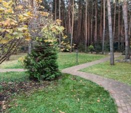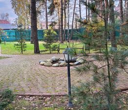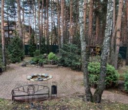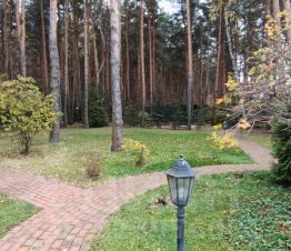 На участке высажены декоративные растения. В доме 3 этажа+ 1 цокольный. Выделенная зона с отдельным входом для проживания персонала. 5 спален со своими сан.узлами и гардеробными+ 2 комнаты (под кабинет/ библиотеку); бильярдная с сан.узлом, кинозал, бассейн с сауной с выходом на веранду с зоной барбекю. В отделке использованы натуральные материалы (различные виды дерева: ясень, дуб); наружные ограждения веранды и балконов- ковка. Стены дома кирпичные; межэтажные перекрытия- ж/б конструкции. На 1 этаже везде теплые полы, в т.ч., и в бассейне, а также во всех сан.узлах всего дома.