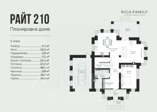 Общая площадь дома с гаражом 256 м².