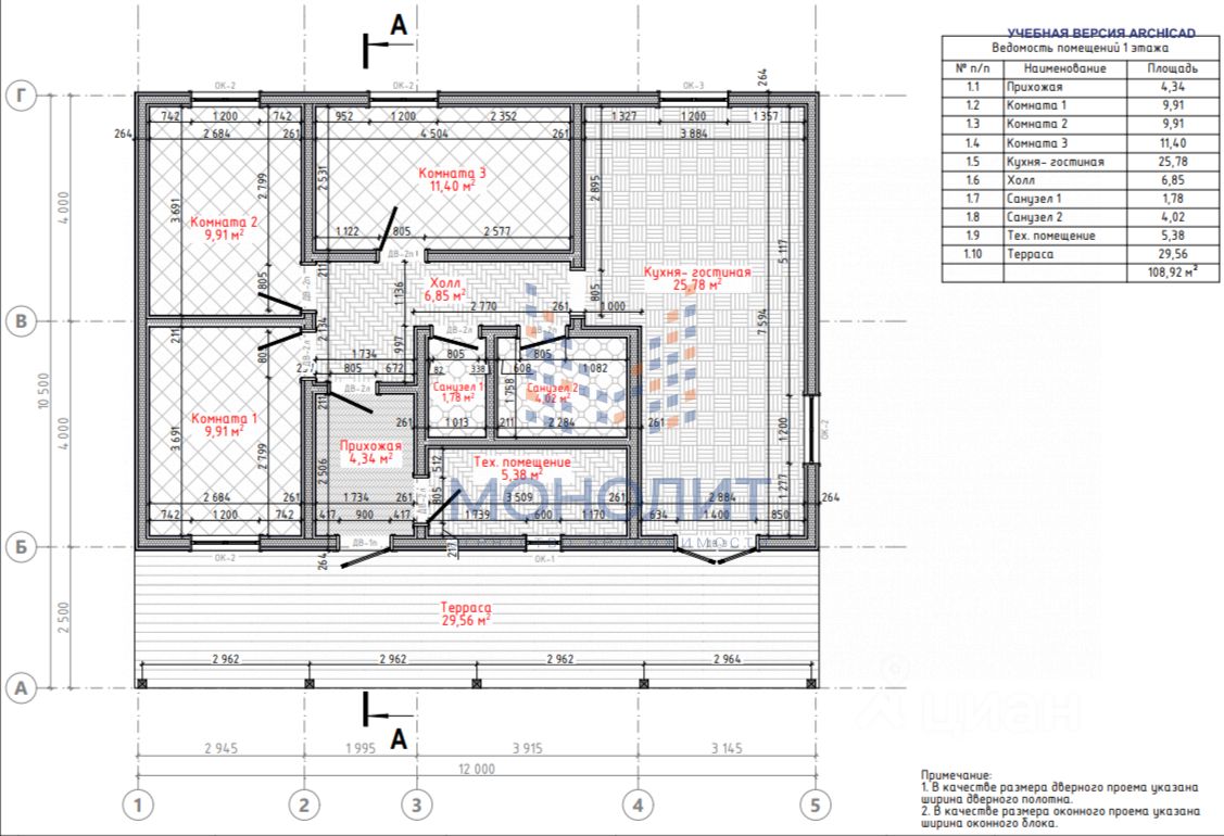 - Общая площадь с террасой - 116 м2