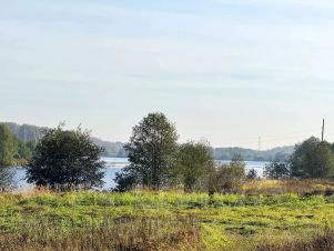 Участок на берегу реки Никажель в новом современной коттеджном посёлке имеющим свой песчаный пляж. Окружен лесным массивом.