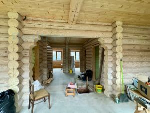- деревянная баня с дровяной печью и с жилой комнатой на 2 этаже. В бане дополнительно есть душ и бойлер, которыми можно пользоваться пока будет завешено подключение коммуникаций к дому