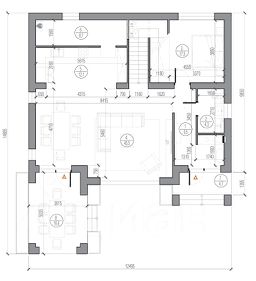 прихожая, гардероб, санузел, спальня-кабинет, котельная-постирочная, кухня-гостиная-столовая (огромное единое открытое пространство) с выходом на террасу.