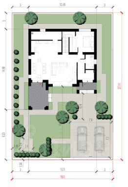 Дом посажен на участок с учетом сторон света и видовых особенностей.