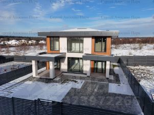 Коттедж построен по индивидуальному проекту. Дом новый, красивый и современный, высокие потолки, панорамные окна, продуманная планировка.