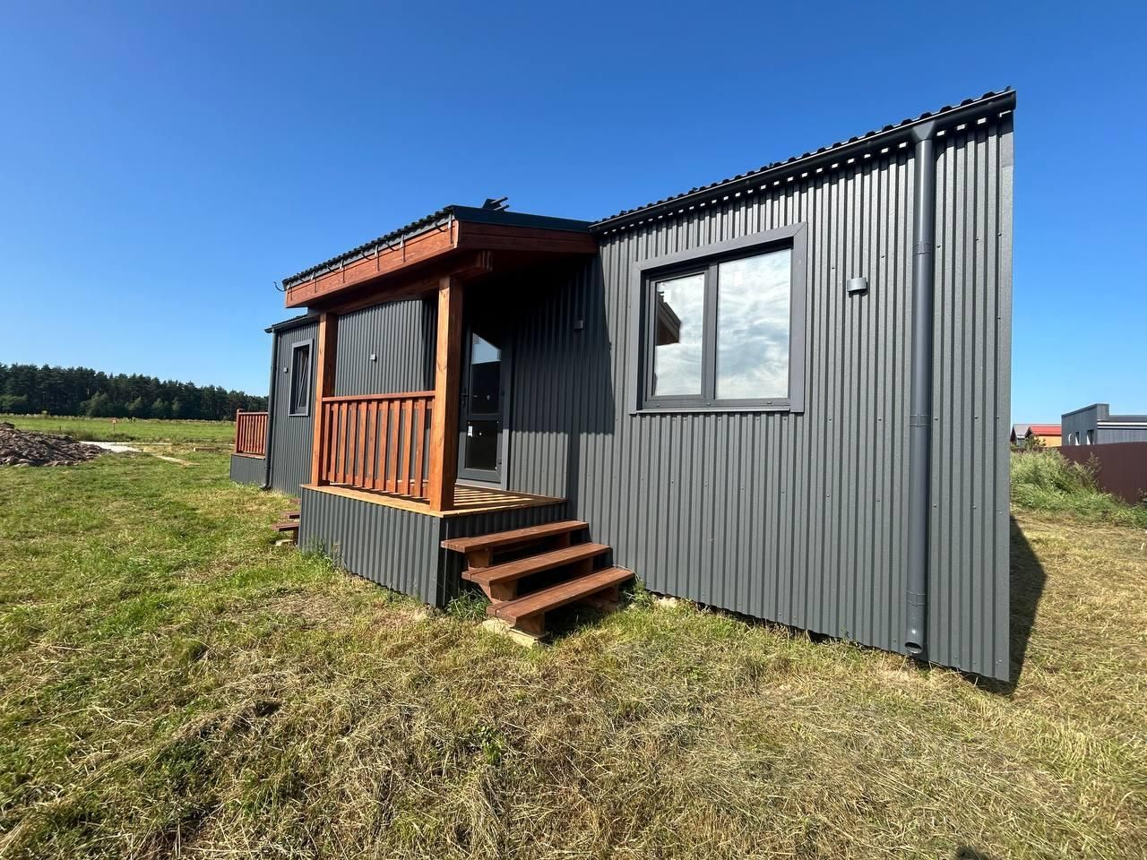Дом построен по индивидуально-разработанному Архитектурному проекту с соблюдением технических норм и стандартов малоэтажного строительства. Дом установлен на надежном свайном фундаменте, с толщиной стенки 3,5 млм, диаметром 108млм и высотой свай 3.5 метра. В строительстве использована продуманная каркасная (финская) технология с элементами скандинавского стиля; использована дву-скатная кровельная система на современных комплектующих от именитой компании с финальным покрытием Grand Line Satin Matt Ral 7024 В доме удобное планировочное решение с 3мя просторными изолированными спальнями, большая кухня-гостиная с выходом на просторную веранду, функциональный с/у и отдельная котельная, отопление построено на базе электрического котла с возможностью управления системой отопления и подогрева воды, через контроль температуры воды и приоритетный подогрев (трех-ходовой клапан) по сети Wi Fi . *Ключевые преимущества: