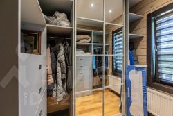 Значительно расширен и достроен по собственному проекту, который включил в себя котельную, два капитальных машиноместа, помещение для инвентаря, а также капитальную крышу над террасой с обратной стороны дома. Капитально сделана гидроизоляция фундамента, дренаж участка вокруг дома, дополнительно утеплена крыша, под крышей оборудовано дополнительное помещение (спальня).