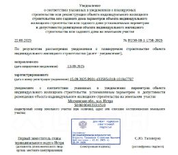 Получено разрешение на строительство дома 180 метров, подали уведомление о строительстве жилого дома и получили разрешение.