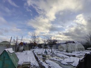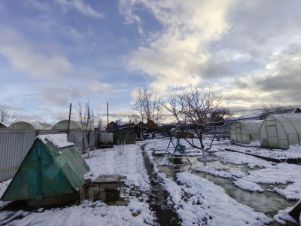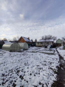 На участке гараж 35 кв.м, плодовые деревья и кусты, грядки, парники.