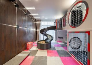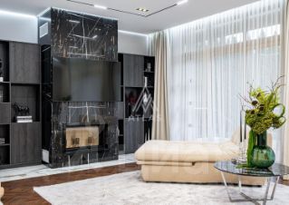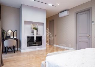 Планировка таунхауса включает: просторную оборудованную кухню, гостиную с камином, 4 спальни, 4 санузла, 4 гардеробные, кабинет и террасу.
