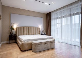 Интерьер выполнен в современной классике: мягкие оттенки, спокойные линии, качественные материалы.