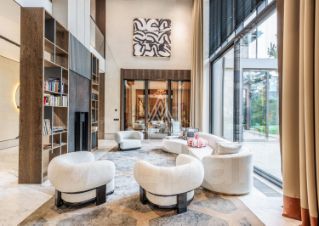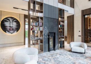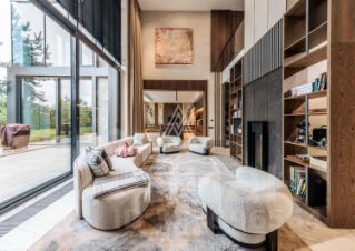 Дом площадью 1300 м² с пятью спальнями расположен на участке 21,44 сотки в коттеджном посёлке Миллениум Парк. Спокойная архитектура, крупные линии остекления и мягкая работа света создают ощущение дома, который открыт природе и ритму загородной жизни.