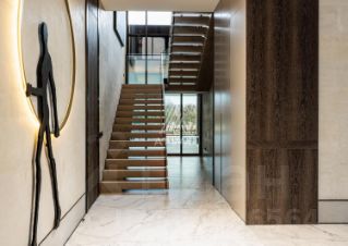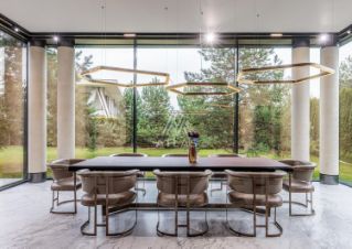 Архитектура строится на сочетании геометрии фасадов и широких оконных плоскостей, которые наполняют дом мягким дневным светом.