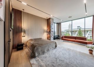 2 этаж: спальня с огромной гардеробной и санузлом с панорамным окном, спальня с санузлом, детская с гардеробной и санузлом, кабинет, который может служить дополнительной спальней, прачечная.