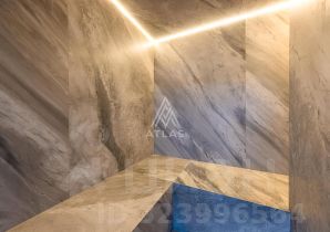 Интерьер выдержан в современном стиле: спокойные оттенки, крупные фактуры камня и дерева, акцентная архитектурная подсветка. В бассейне панорамные окна создают визуальную связь с участком и наполняют помещение мягким отражённым светом.