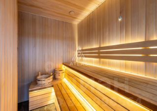 1 этаж: холл, кухня с выходом на летнюю веранду, гостиная-каминный зал, спальня, санузел, гараж для 2-х автомобилей, блок для персонала. СПА-зона с большим бассейном с панорамными окнами.