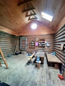 Гостевой дом - выполнен из бревна диаметром 250 мм, крыша утепление 200 мм, крыльцо, одна большая комната с чугунной печью длительного горения и комната на втором этаже.