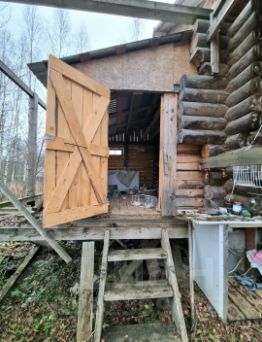 Жилой дом - выполнен из бревна диаметром 250 мм, крыша утепление 200 мм, две комнаты, в одной из них установлен бойлер на горячую и холодную воду, и одна большая комната-гостинная с чугунной печью длительного горения на которой можно готовить еду.