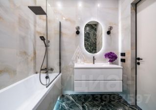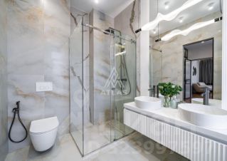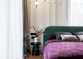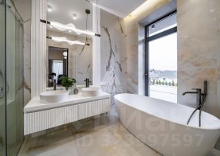 В спальнях — тёплый текстиль, обволакивающий свет и деликатные геометрические формы, а ванных комнаты установлена сантехника премиального уровня.